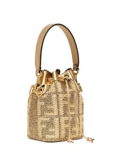 Fendi FF Logo Crochet Raffia Bucket Bag