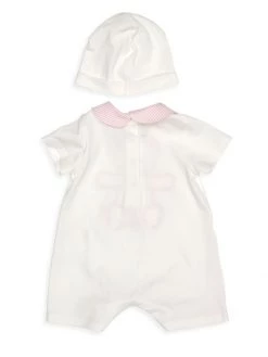 Fendi Baby’s Short-Sleeve Romper & Beanie Hat For Kids White Blue