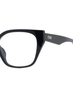 Timeless eyeglasses in a polished rectangular frame, flaunting signature Fendi logo at temples and tips.