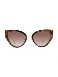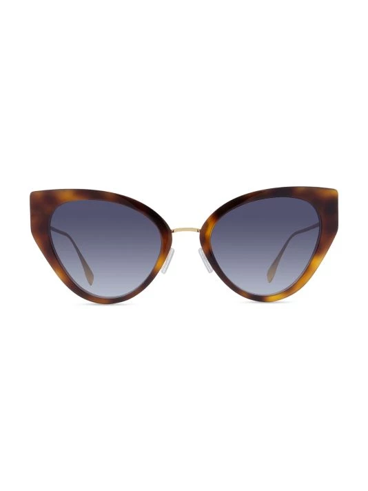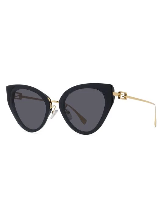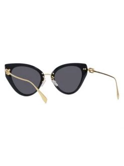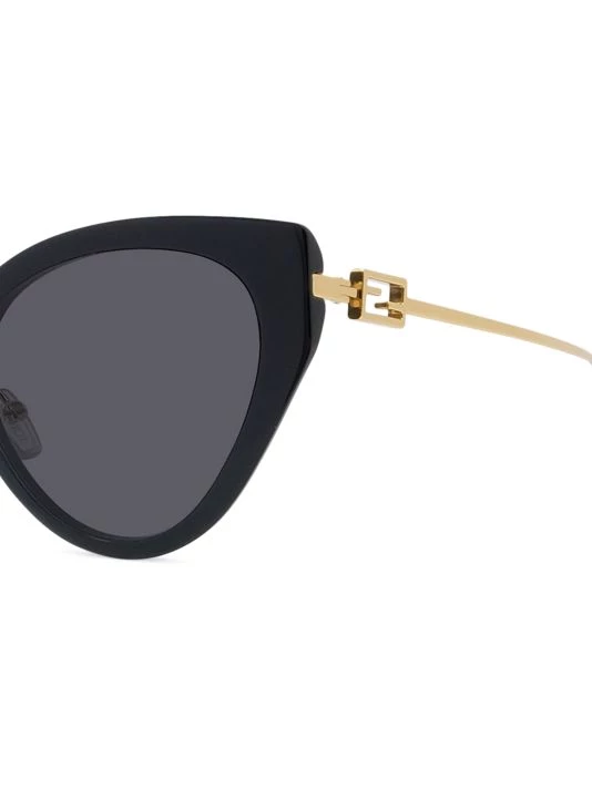Chic sunglasses in a polished cat eye frame flaunts iconic baguette signature at sleek metal temples.
