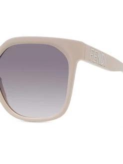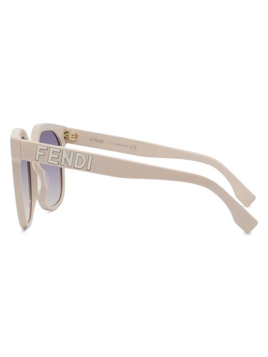 A classic square-shaped style receives a modern twist with subtle frame wings and raised rubber Fendi lettering at the temples.
