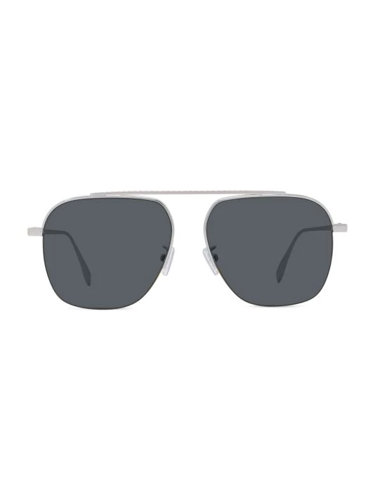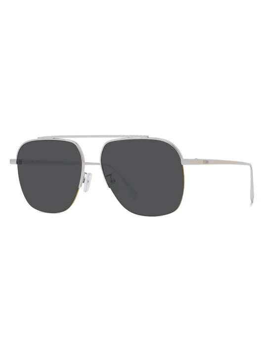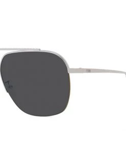 These sleek pilot sunglasses feature polished metal frames, engraved with signature Fendi logos at temples and tips.
