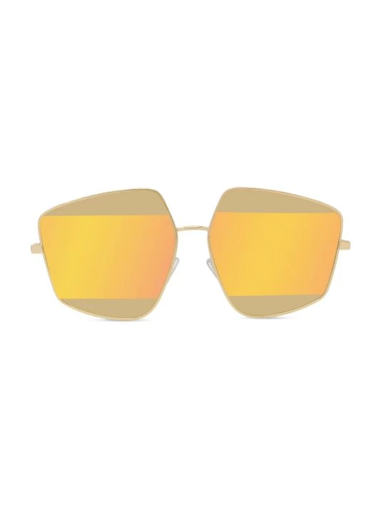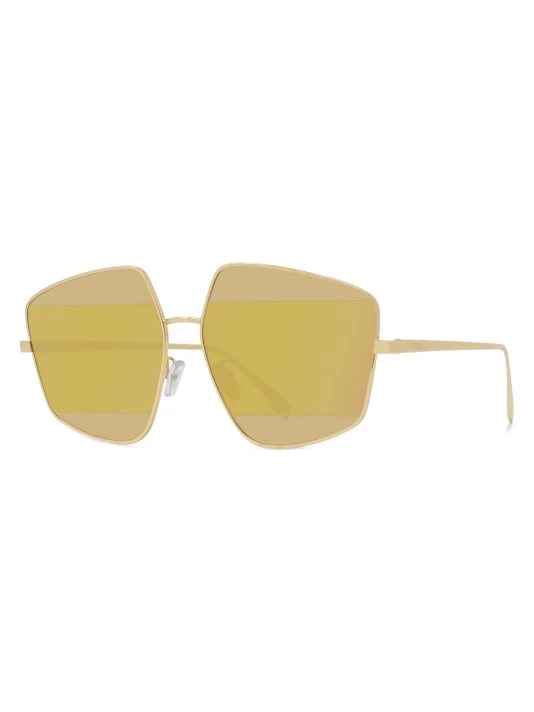 Refined geometric metal frames and striped mirrored lenses elevate these unique sunglasses, featuring embossed Fendi signature logo at temples.