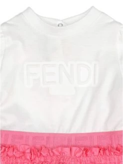 Showcasing logo embroidery at the chest and waistband, this dropwaist dress features cinched details at the waist that give way to a layered ruffled hem.