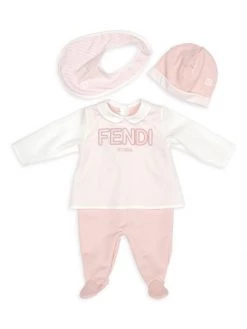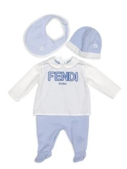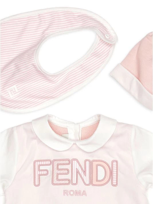 Featuring a coordinating hat and bib, this three-piece set includes cotton coveralls showcasing an embroidered multi-pattern logo at the chest. Cotton. Machine wash. Made in Italy.