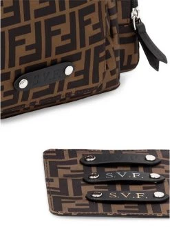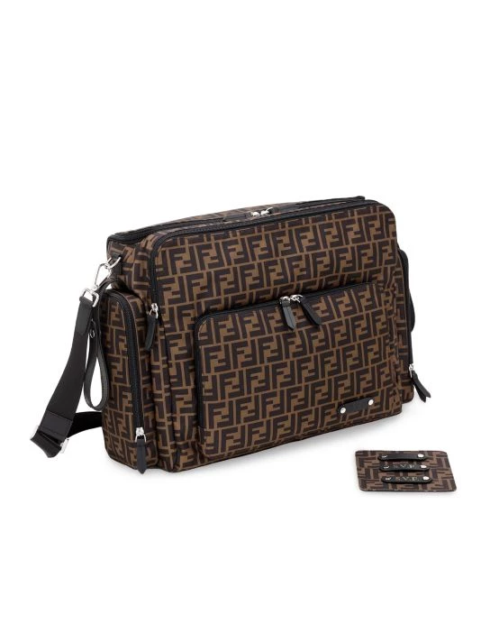 Itailian-crafted diaper bag with a bold allover logo print and rich leather trim.