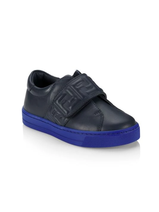 These leather sneakers feature a contrast rubber sole and grip-tape strap closure debossed with repeating 3D FF logos.