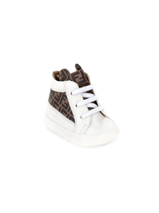 These leather crib sneakers are adorned with the signature FF logo and feature the tongue with bear ears.