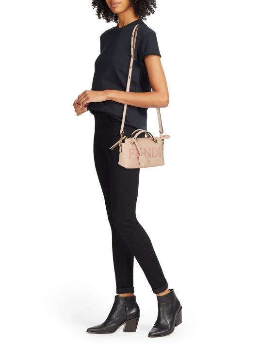 Made in Italy of rich leather, Fendi’s By The Way bag is detailed with an oversized heat-stamped Fendi Roma logo. This luxurious piece features stitched handles adorned with polished spiked studs.