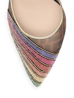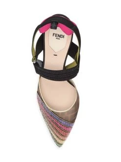 Anchored by a lacquered curved heel, Fendi’s Colibri pumps feature rainbow beaded embellishments at the mesh FF-logo vamp. This Italian-made pair is finished with a cushioned slingback strap.