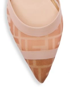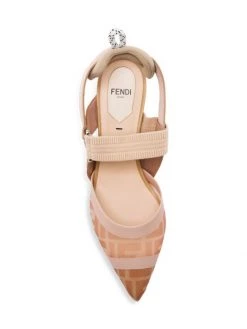 Mixed-media pumps with sporty styling in a point-toe slingback silhouette.