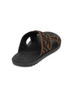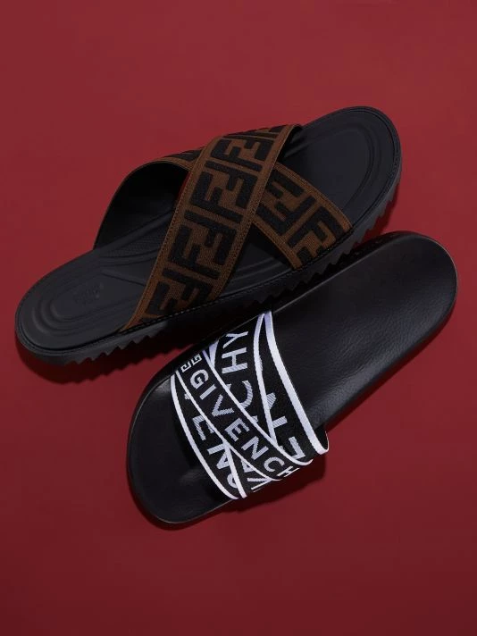 Essential slides with comfortable stretch fit vamp feature signature logo details.