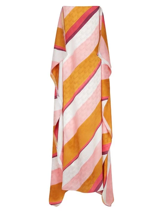 Woven of lustrous silk, this dress boasts diagonal striping and tonal logo prints.