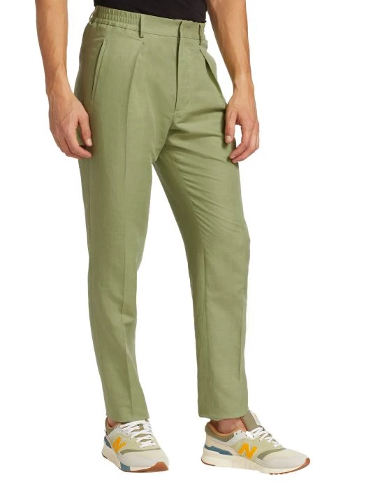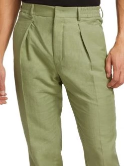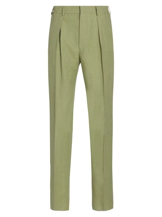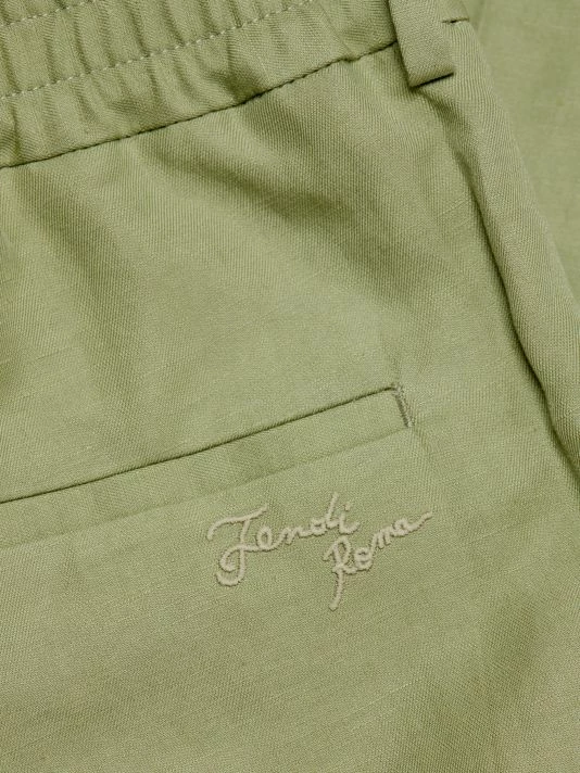 Featuring pastel and earth-tone intarsia shirts and shorts, and bombers depicting cityscapes, this collection reimagines inky nighttime silhouettes and aerial perspectives of land. Rich textures and abstract prints come together for a refined wardrobe with a boundary-breaking point of view. Subtle pleating at the front enhances the silhouette of Fendi’s soft linen-blend pants.