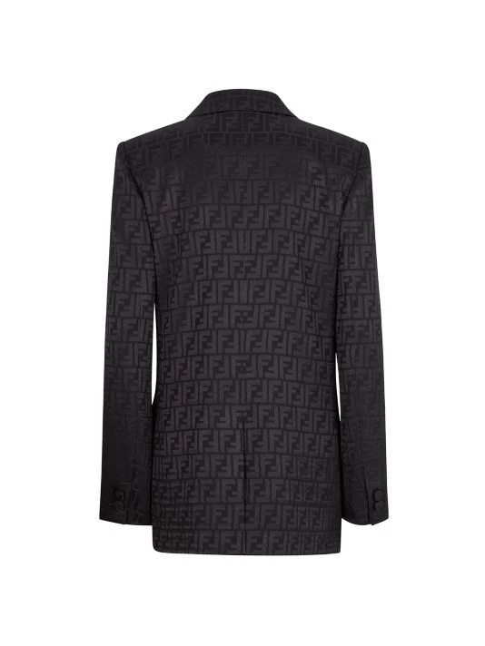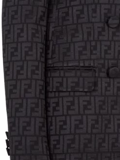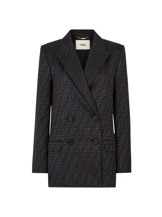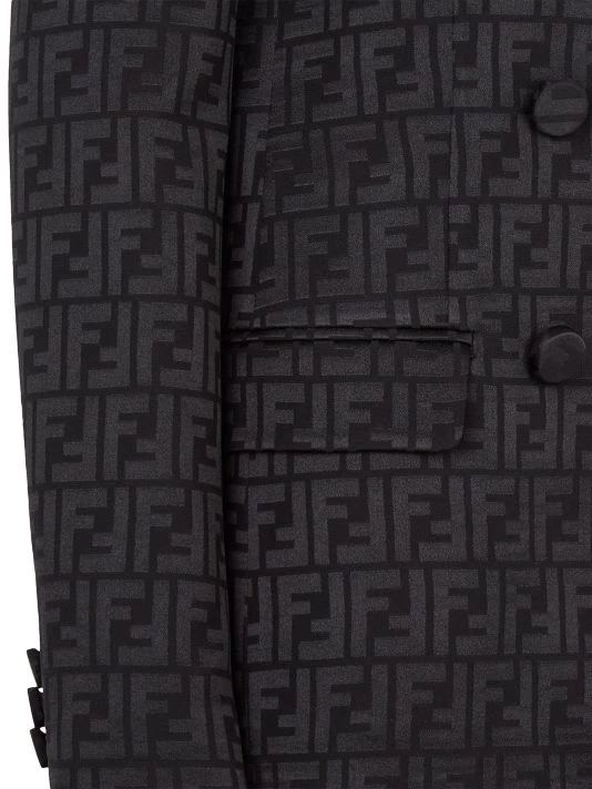 Embossed with signature monogram logo lettering, this refined silk blazer is tailored to a double-breasted silhouette.