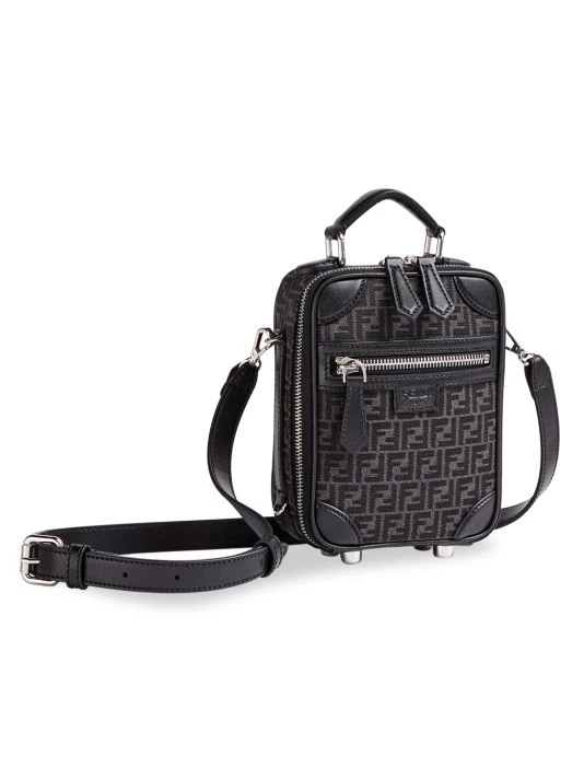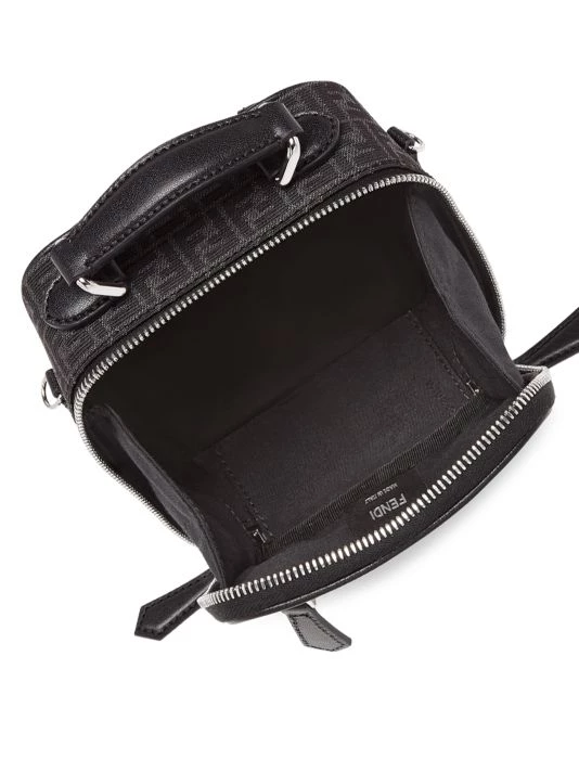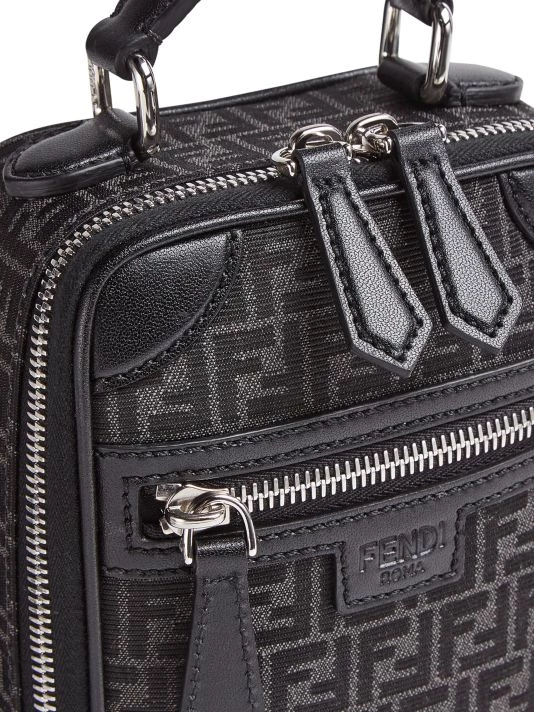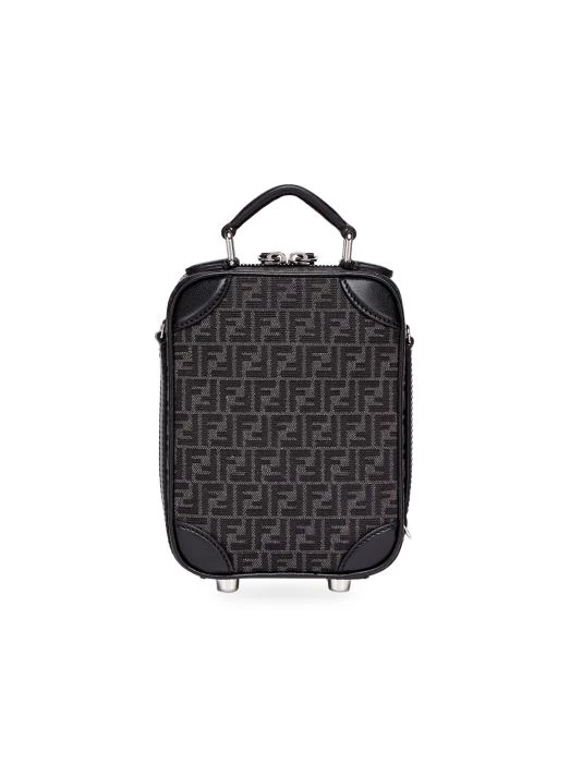 Mini travel bag dressed in FF print fabric with leather accents.