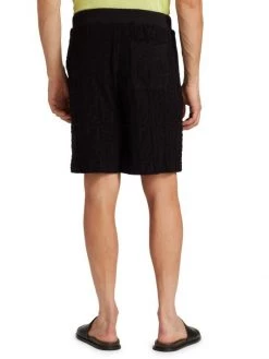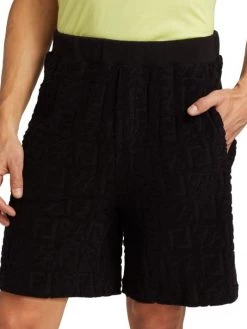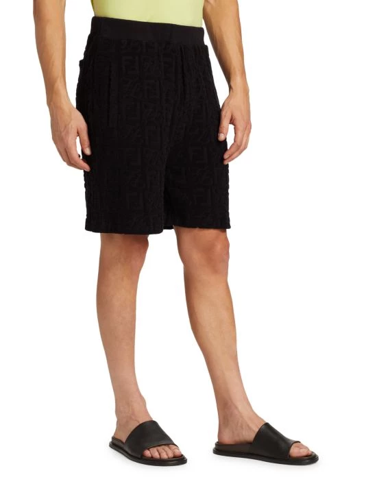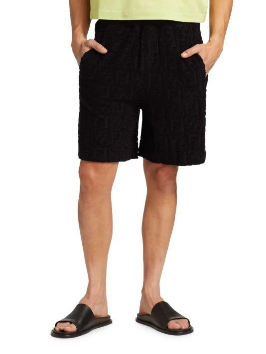 Featuring pastel and earth-tone intarsia shirts and shorts, and bombers depicting cityscapes, this collection reimagines inky nighttime silhouettes and aerial perspectives of land. Rich textures and abstract prints come together for a refined wardrobe with a boundary-breaking point of view. Crafted of a cotton blend, these Bermuda shorts feature the Fendi FF logo print and sport side slip pockets.