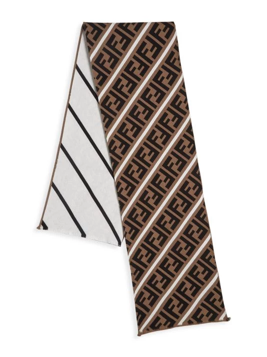 Iconic striped scarf in a rich fleece wool and silk-blend with signature FF logo.