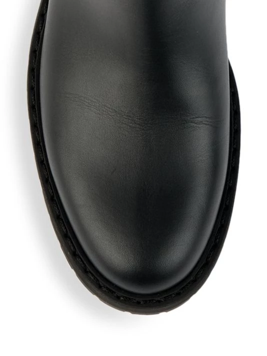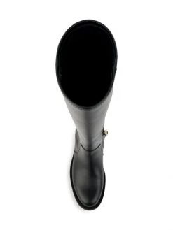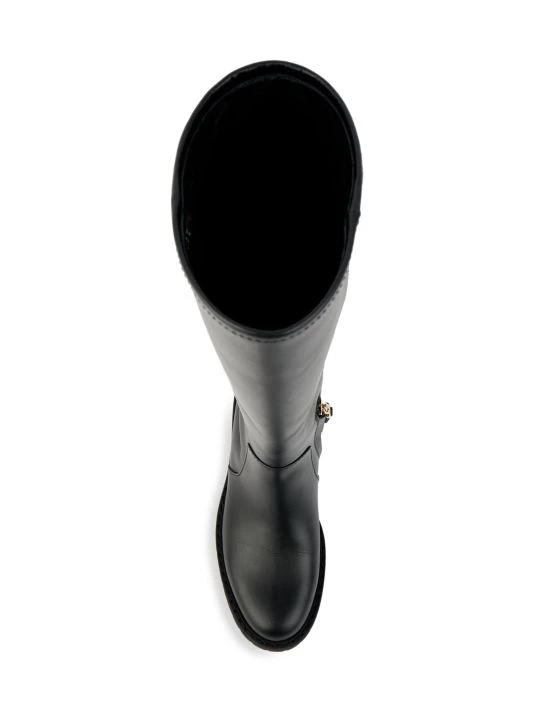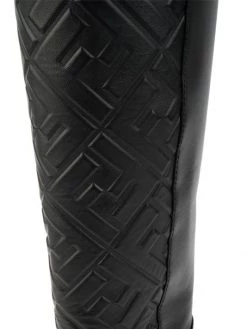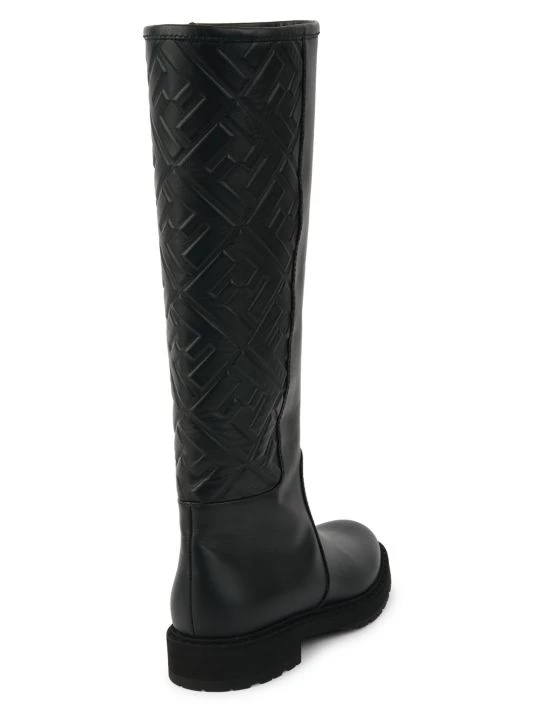 Embossed logo motif adds refined appeal to these tall leather boots.
