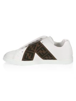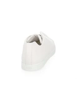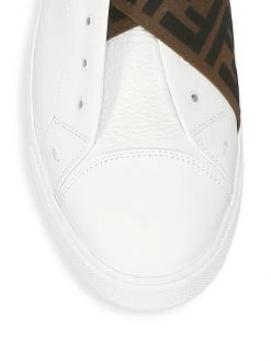Banded logo adorns pebbled leather sneakers in a crisscross formation.