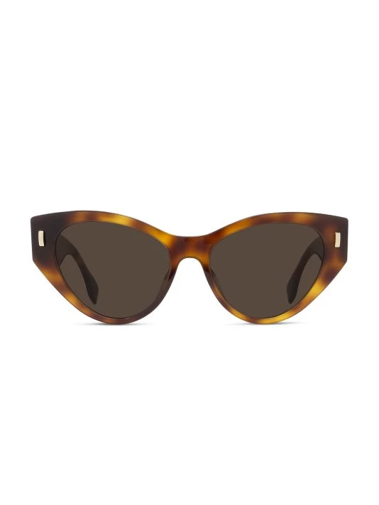 From the Fendi First Collection. Fendi’s sunglasses flaunt a feminine cat-eye shape adorned with metal studs at the corners. This sleek pair is finished with the F-logo at the hinges.