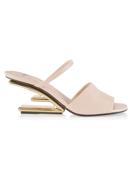 From the Fendi First Collection. Elevated with a diagonal F-shaped sculpted heel, Fendi’s sleek sandals are designed with smooth leather straps.
