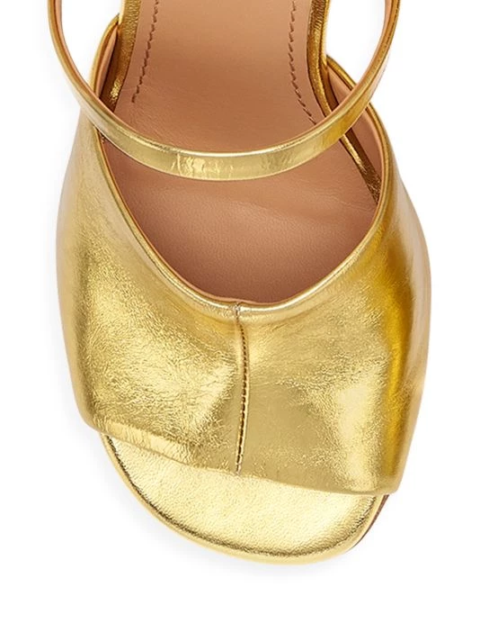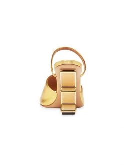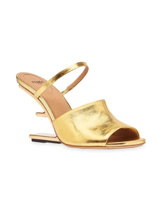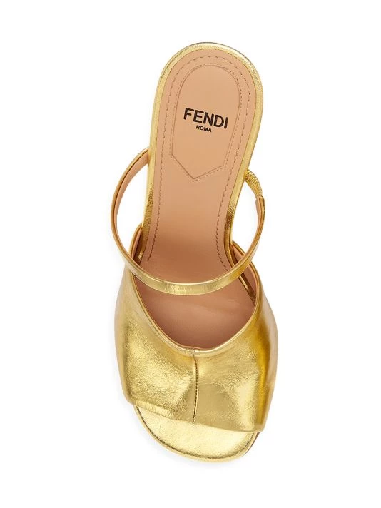Crafted with metallic nappa leather, Fendi’s iconic elegance reflects in these mule-style sandals. The signature FF monogram is sculpted into the heel finished in a matching goldtone.