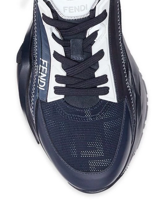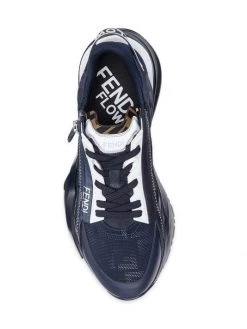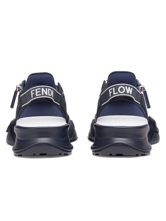 Crafted of suede and tech fabric, these two-tone slip-on sneakers feature elasticized laces, a side zipper, and are embossed with Fendi Flow lettering at the heels.
