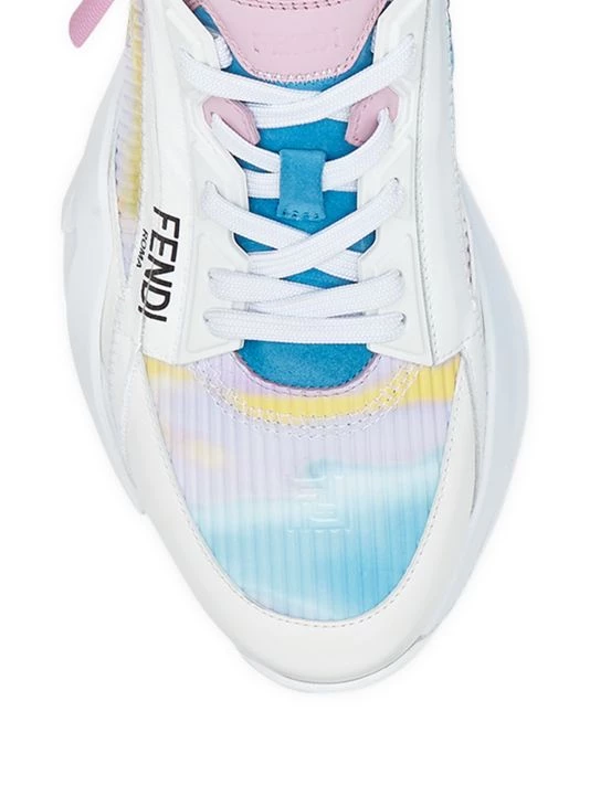 These Fendi running sneakers flaunt an airy jacquard-knit upper decorated with tonal rubber appliqués.