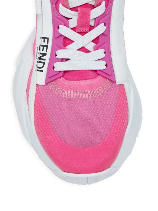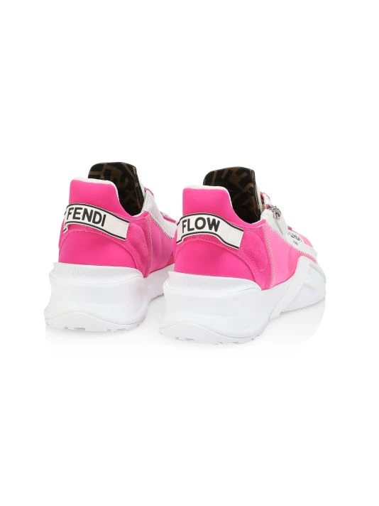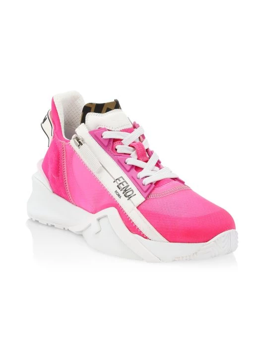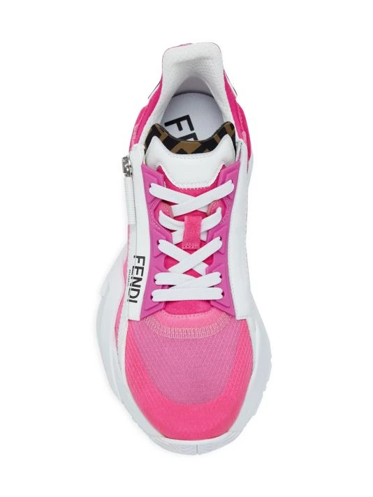 Mixed-media sneakers topped with zipper detail and signature logo trim.