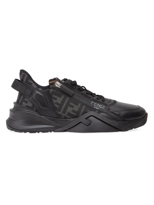 Pairing logo jacquard with smooth leather, Fendi’s Flow Vitello sneakers have a sporty look with utilitarian zip detailing.