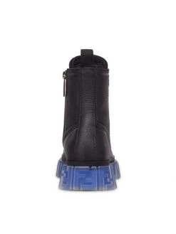 Lace-up leather combat boots featuring an inside zipper and contrasting chunky rubber sole with embossed FF heel detail.