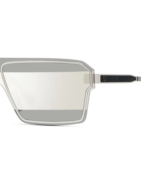 From the Fendi Fragment Collection. Fendi’s sunglasses boast shield frames with a single mirrored band. Made in Italy, this statement pair features rubberized inserts with a signature FF logo at the temples.