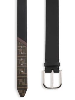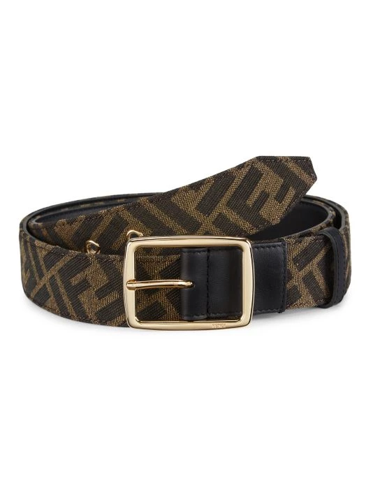 Signature woven logo adorns this sleek textile belt with luxe leather trim.
