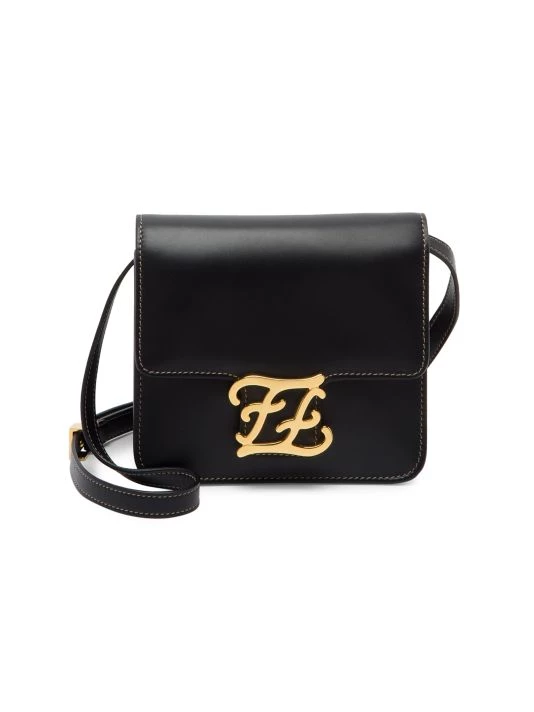 Iconic FF logo is reimagined in calligraphy style, adding interest to this glossy patent leather crossbody bag.