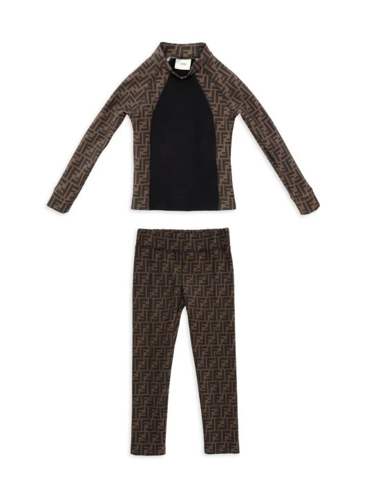 Fendi’s childrenswear continues the house’s tradition of Italian craftsmanship and carries the legacy of luxury to the next generation. This two-piece ski set in the brand’s signature FF logo print includes a long-sleeve top and leggings. 75% polyamide/22% elastane. Hand wash. Made in Italy.