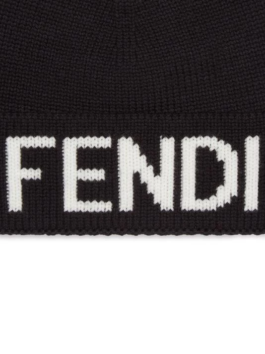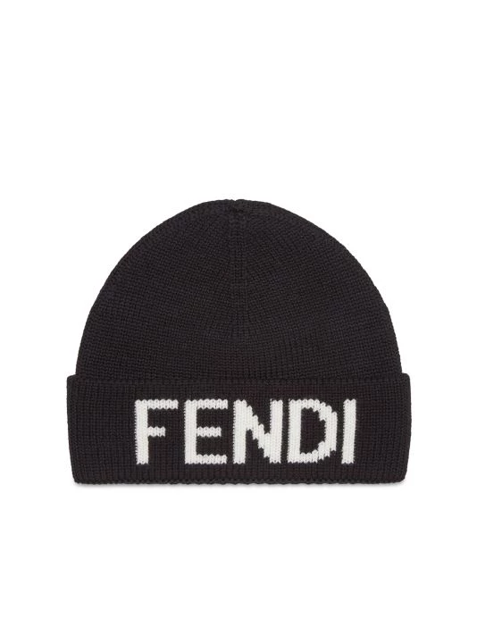 Classic wool-knit beanie featuring a bold FENDI logo across the front.