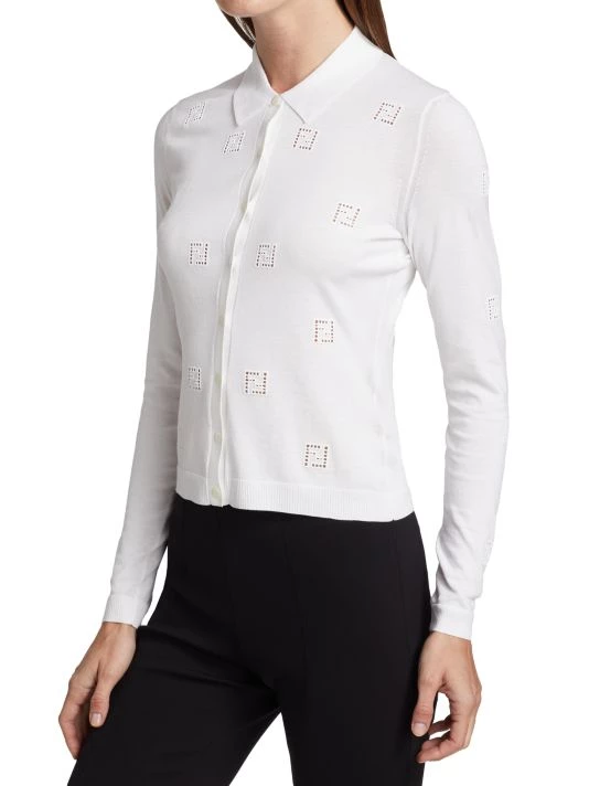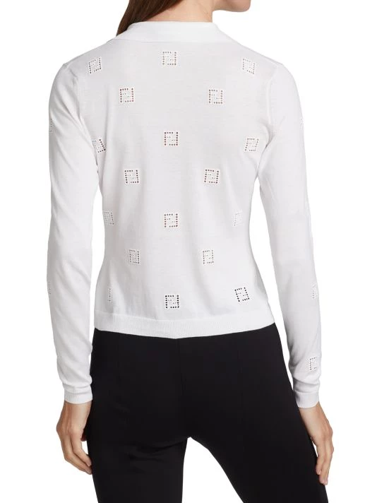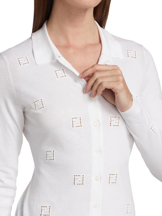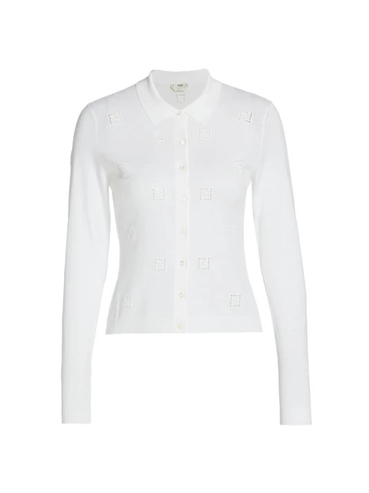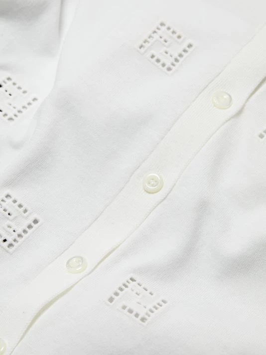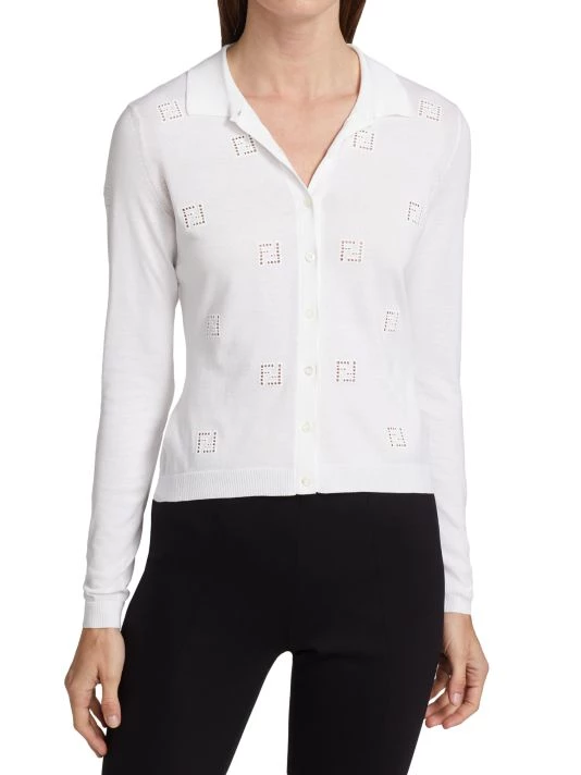 Cozy, cotton cardigan with scattered open work, logo motif.