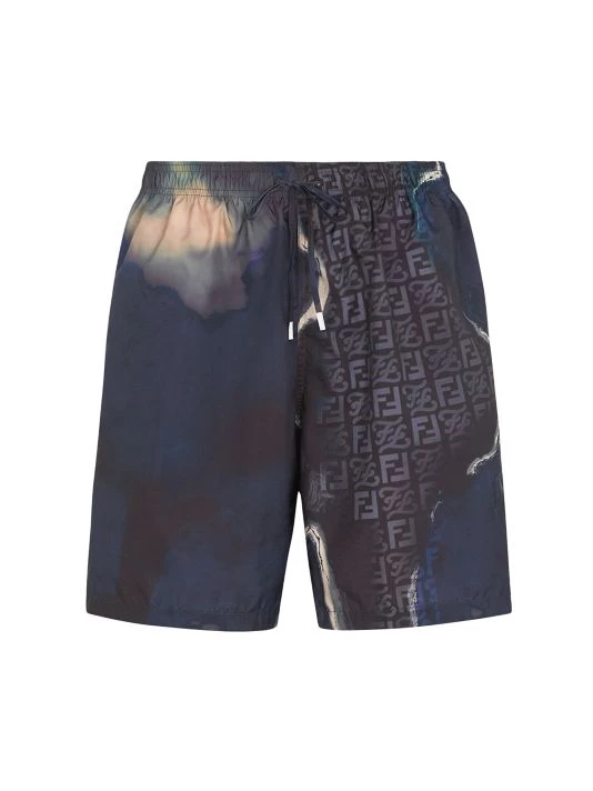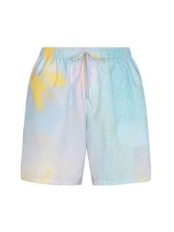 Featuring pastel and earth-tone intarsia shirts and shorts, and bombers depicting cityscapes, this collection reimagines inky nighttime silhouettes and aerial perspectives of land. Rich textures and abstract prints come together for a refined wardrobe with a boundary-breaking point of view.Made of polyester, these swim shorts feature the brand’s monogram print and fastens with a drawstring elastic waistband.