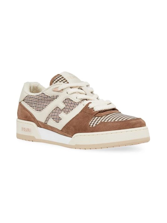 From the Fendi Match Collection. Made in Italy, Fendi’s low-top sneakers are decorated in a houndstooth pattern with suede and leather panels. This pair features signature FF lettering at the sidewalls.