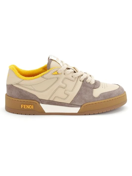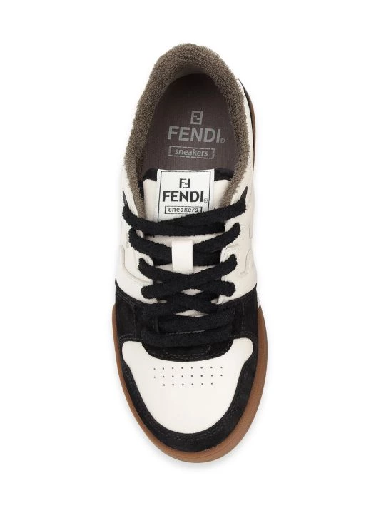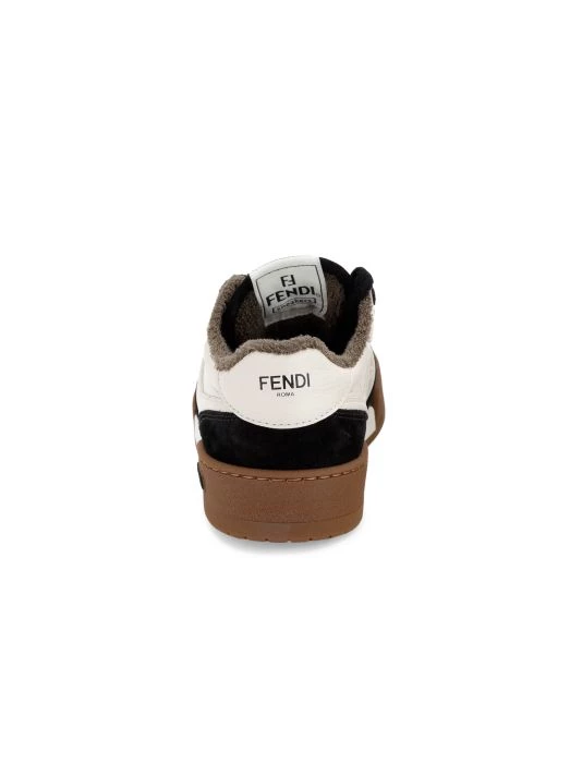 Mixed-media low-top sneaker flaunts the FF logo at sidewall featuring terry cloth laces and interior for added texture.