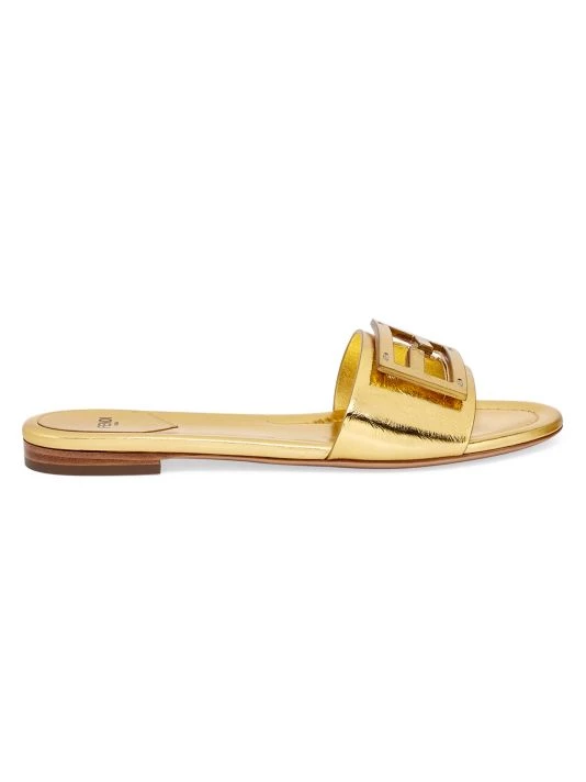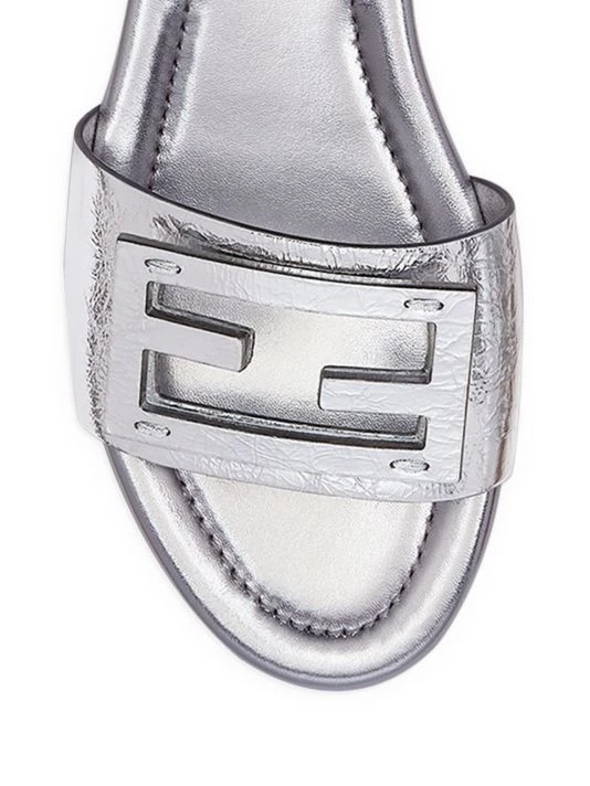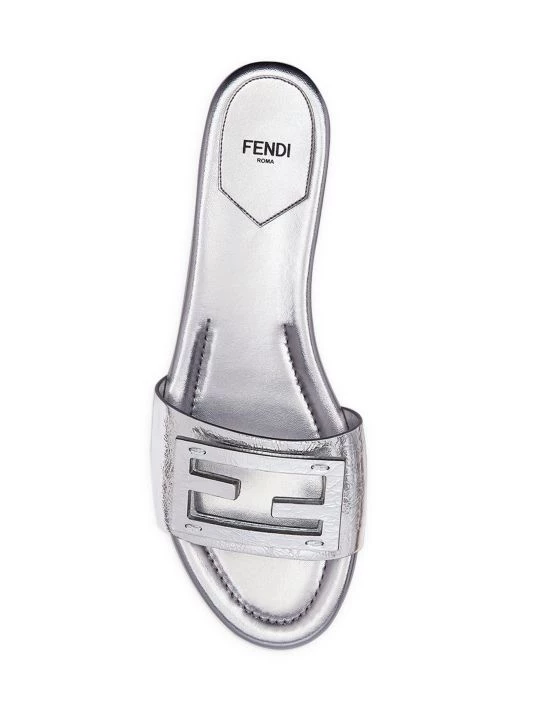 These metallic slides feature an FF logo buckle at the vamp.