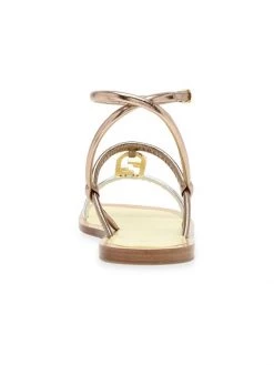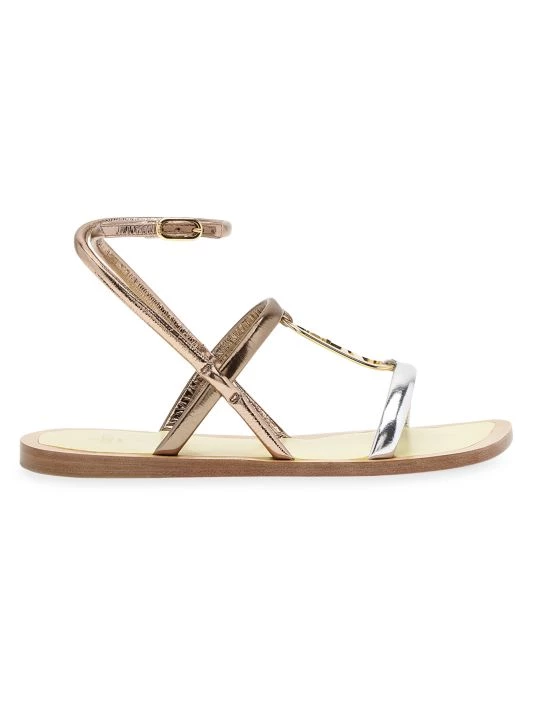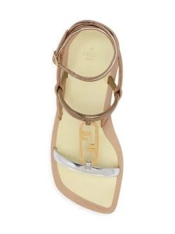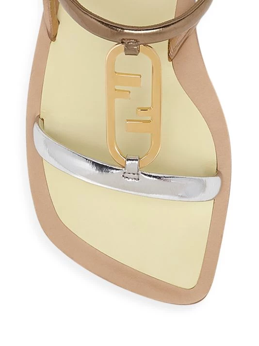 Flaunting a strappy metallic leather construction, Fendi’s flat sandals are highlighted with polished logo hardware at the vamp. This luxurious pair is fastened by a dainty ankle strap.