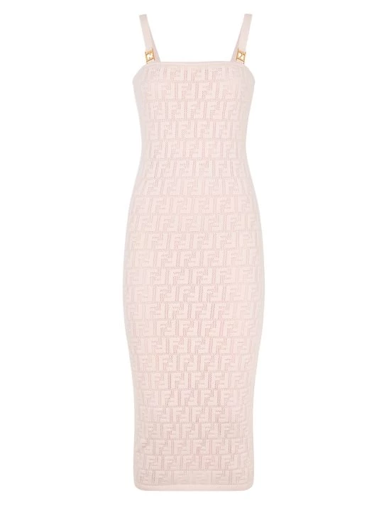 Crafted from stretch monogram mesh, this logo midi dress is designed with a pencil silhouette.