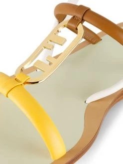 Highlighted with signature O’Lock logo hardware, Fendi’s flat sandals are made in Italy of dainty colorblocked leather straps.