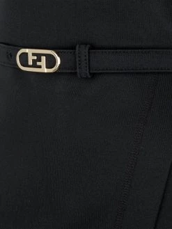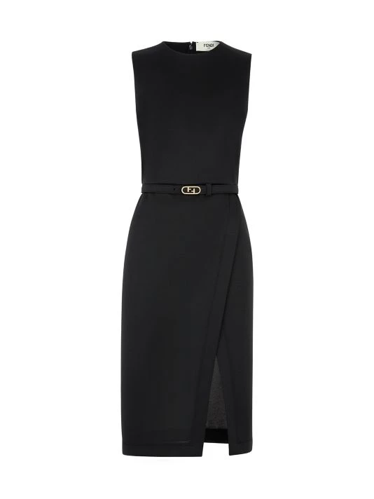 With a minimalist design, this polished sheath dress is fashioned with a tonal belt featuring a goldtone FF monogram buckle and surplice hem.