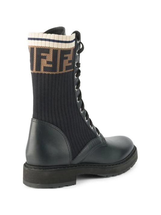 - Elevate your street look in these edgy combat boots with eye-catching knit sock details