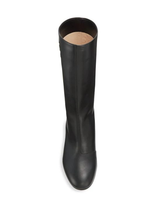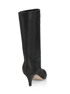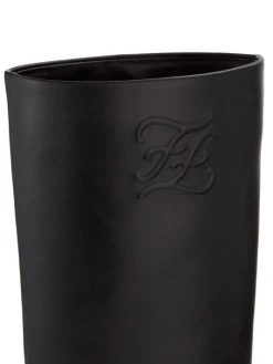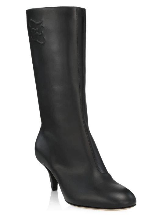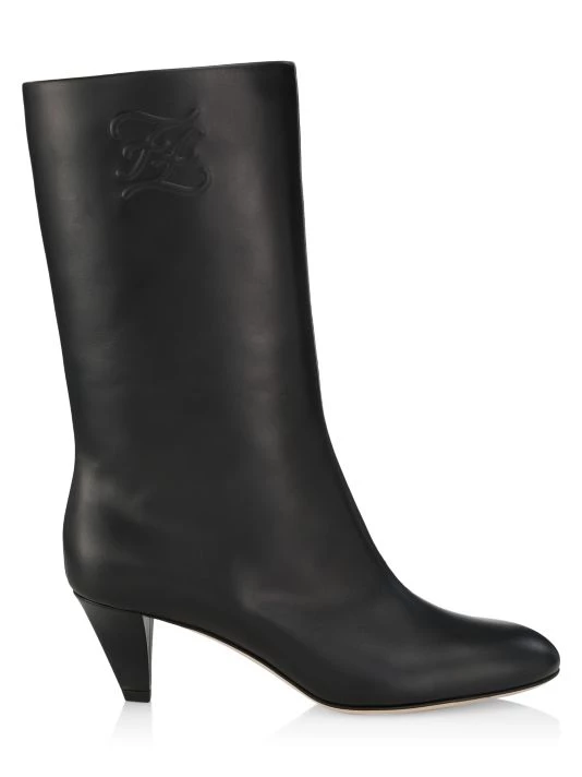 Luxurious Italian leather boots flaunting embossed FF Calligraphy motif at side.