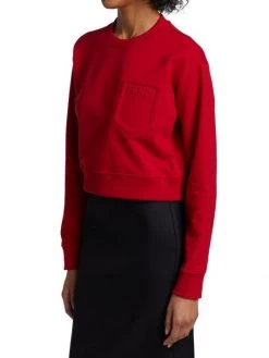 A tonal logo chest patch accents this cropped crewneck knit sweater adding signature appeal to the athletic piece.