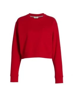 A tonal logo chest patch accents this cropped crewneck knit sweater adding signature appeal to the athletic piece.